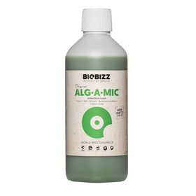 AlgAMic es un revitalizante ecológico hecho a partir de algas marinas prensadas en frío y posteriormente concentradas que proporcionan a los cultivos micronutrientes, vitaminas, aminoácidos y hormonas de origen vegetal. Las algas marinas actúan positivamente en el crecimiento de las plantas. Mejoran su capacidad para soportar ciertos niveles de estrés medioambiental y reducen los ataques y las plagas de insectos en las plantas. Mantienen un nivel superior de clorofila; aumenta el número de microbios que alimentan las bacterias benignas y beneficiosas para la tierra. También ayudan a reducir el daño causado por nematodos minimizando su penetración en la raíz. Inician o aceleran el proceso de aclimatación incluso en condiciones de frío extremo. AlgAMic es el estimulante 100% natural que consigue una planta fuerte, resistente a enfermedades y con un verdor exuberante. Disponible en: 500ml, 1, 5 y 10 litros. Marca: Bio Bizz