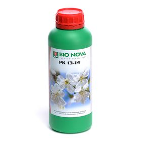 El fósforo tiene un papel fundamental en el desarrollo saludable de las raíces y una exuberante floración. El potasio colabora en lo que llamamos potencia de floración. La combinación de estos dos minerales podría llamarse sin duda súper estimulante de la floración. Por todo esto lo consideramos un componente esencial para cada ciclo de cultivo. PK 13-14 forma parte de nuestra línea de fertilizantes minerales puros (libre de elementos lastre) y es un poderoso complejo fósforo-potasio para la floración, de directa absorción por las plantas. Debe ser utilizado en combinación con Hydro Supermix, Soil Supermix, Haze Supermix o NFT-Aqua. Estas posibles combinaciones hacen una fertilización completa en hidropónico, en tierra o en sistemas NFT. Dosificación: Primera semana de floración: 25 ml./100 l. Segunda semana de floración: 75 ml./100 l. Tercera semana de floración: 100 ml./100 l. Cuarta semana de floración hasta la cosecha: hasta máximo de 125 ml./100 l. Marca: Bio Nova