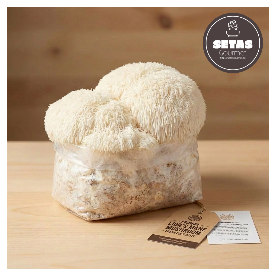 El kit de cultivo Setas Gourmet ha sido desarrollado para permitir la producción doméstica de setas de alta calidad de forma cómoda y controlada. Contiene un bloque de cultivo preparado sobre un sustrato nutritivo formulado a partir de madera de roble sostenible en formato pelletizado y salvado de trigo de calidad alimentaria. Este medio se encuentra completamente micelizado con una genética seleccionada de Hericium erinaceus, una de las variedades más apreciadas dentro del mundo de las setas gourmet.
